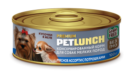 мясное ассорти с потрошками, консервированный корм для собак мелких пород, 24х100
