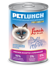 мясное ассорти с олениной, консервированный корм для кошек, 9х400