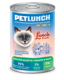 мясное ассорти с языком в желе, консервированный корм для кошек, 9х400